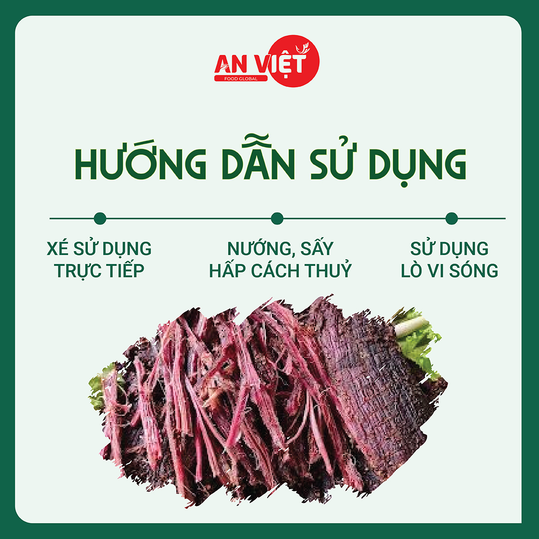 Cách ăn: Làm nóng, xé phay ăn trực tiếp.